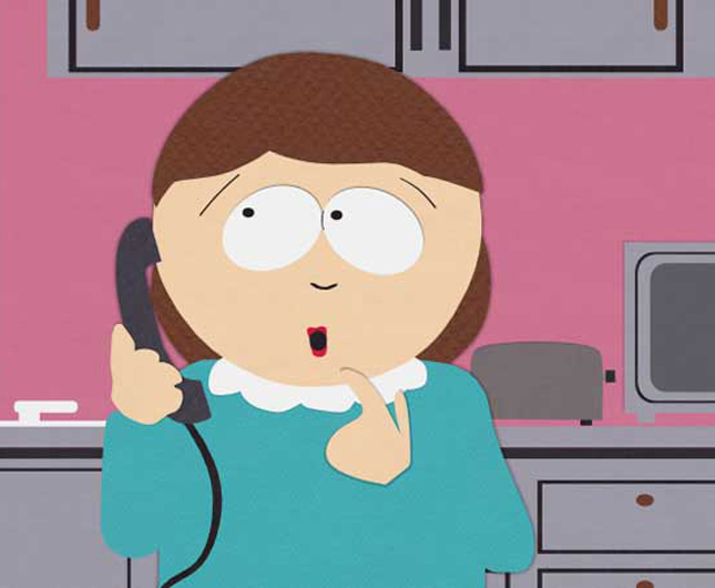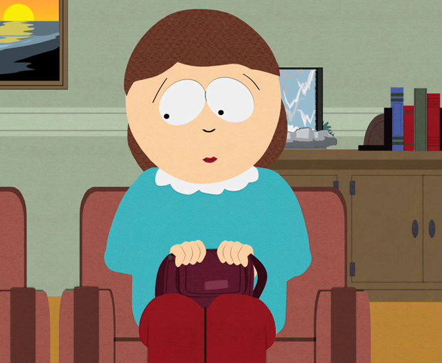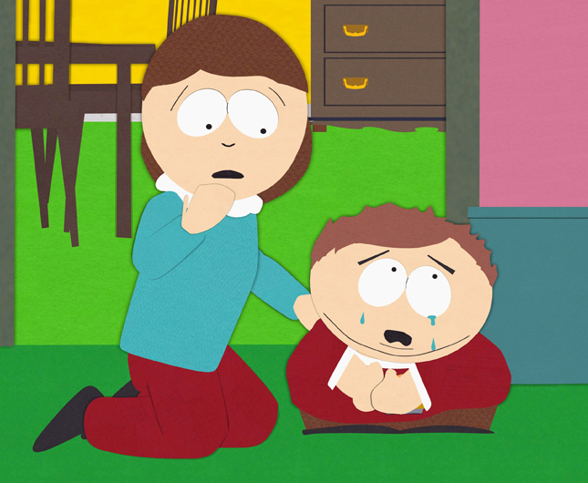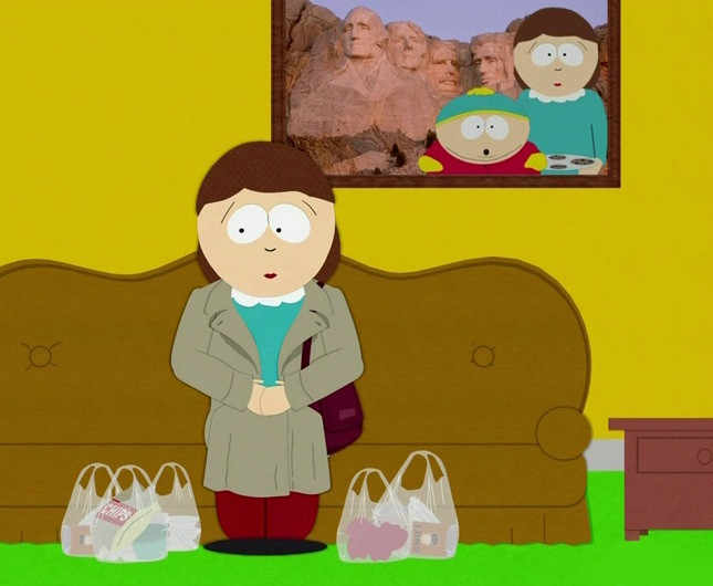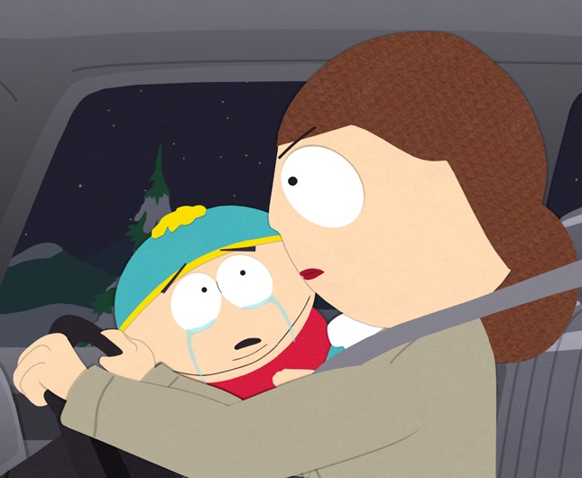 1102: Cartman weint sich bei seiner Mutter aus, weil er glaubt, dass Kyle ein Foto von ihm geklaut hat. Sie sucht für ihn danach.